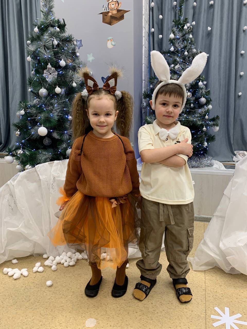 Посмотрите на наши красивые «Конфетишки» перед долгожданным новогодним утренником. Здесь и белочка, и зайка, медвежонок и ежонок, волк и хитрая лисичка, птица и два Снеговичка, мечтающих узнать, что же такое Новый год!