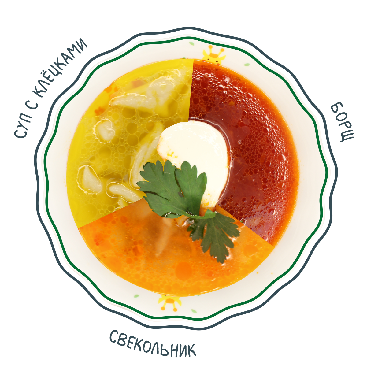 - Суп «Полевой» со сметаной на мясном бульоне